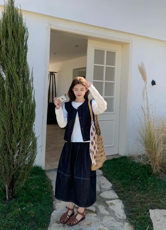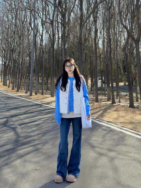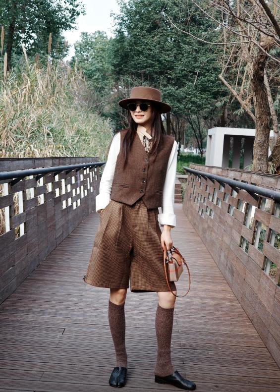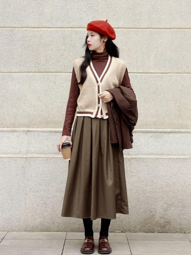 上衣叠穿的情况下,好多东谈主皆短促会显肥壮,尤其是毛茸茸的马甲,叠穿毛衣的期间,就不要配太肥硕的长裤、长裙了,换成微喇裤、包臀短裙、直筒裙,显瘦成果更好。
