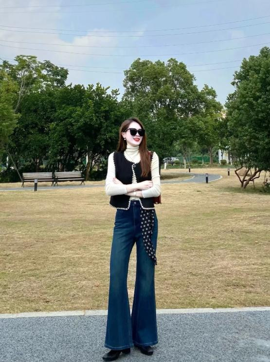 •逛街拍照→高领打底衫+小香风马甲+微喇裤