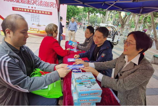 (图:东说念主大代表在宪法日动作派发普法宣传手册)