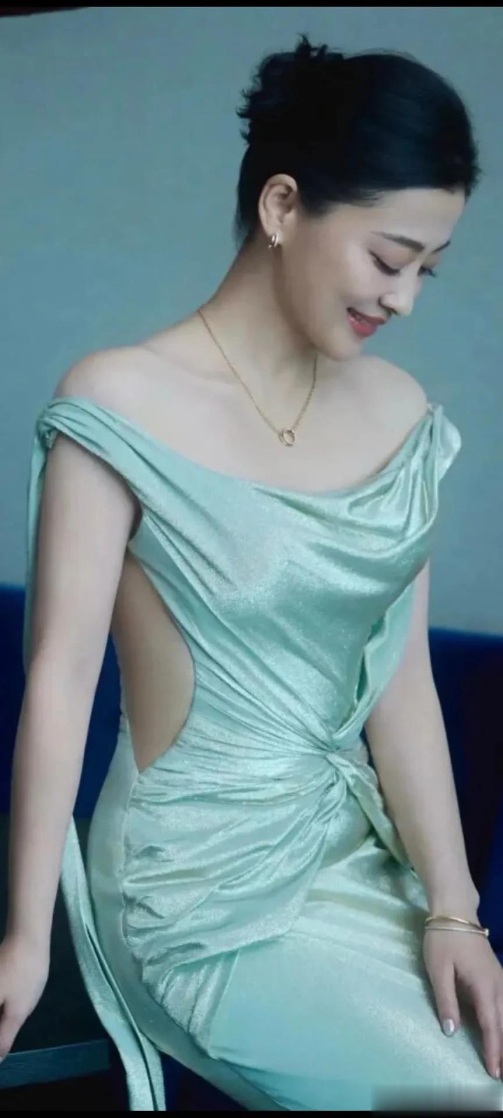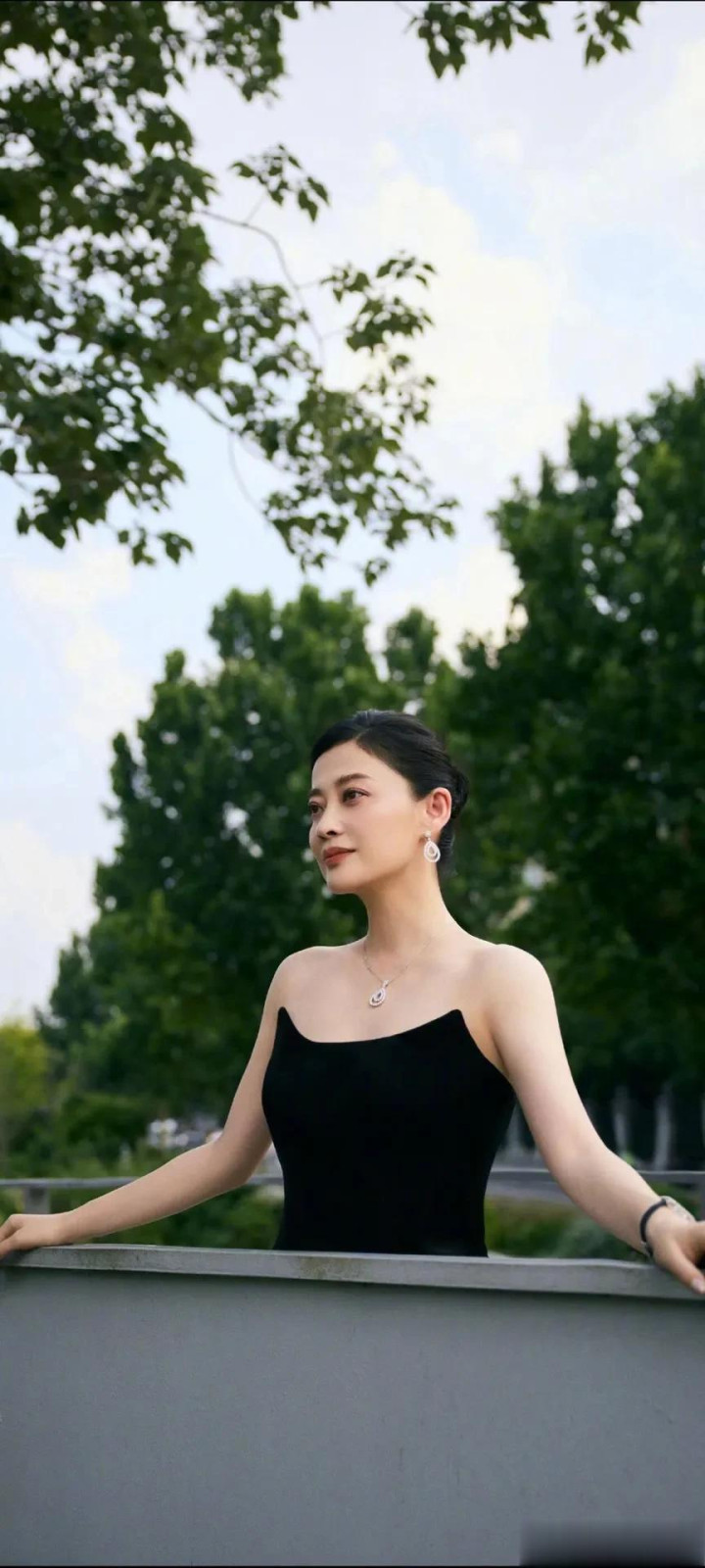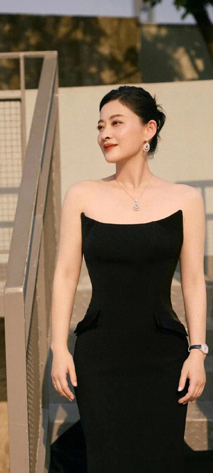 雅博体育app 梅婷|玄色抹胸鱼尾裙, 造型优雅大气