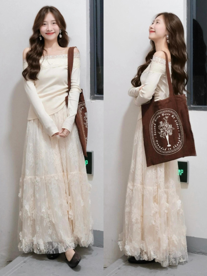 个子工整,长相甜好意思,我们不妨选拔白色软糯肌肤的一字肩真挚上衣,配上高腰收腰的薄纱伞裙,脚踩一对棕色的玛丽珍鞋,这么的打扮随心又有细节感,狂放穿出和煦又精湛的甜好意思立场,仙女感扑面而来。