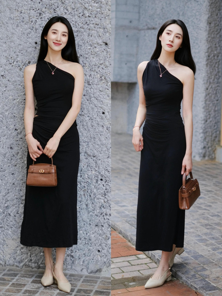 偏疼御姐的气质穿搭,不妨不错选拔上头这一条玄色斜肩连衣裙,合乎的显露锁骨和纤细手臂,使得东说念主看起来更显灵动。适值不错温顺玄色裙装的千里闷与败兴。