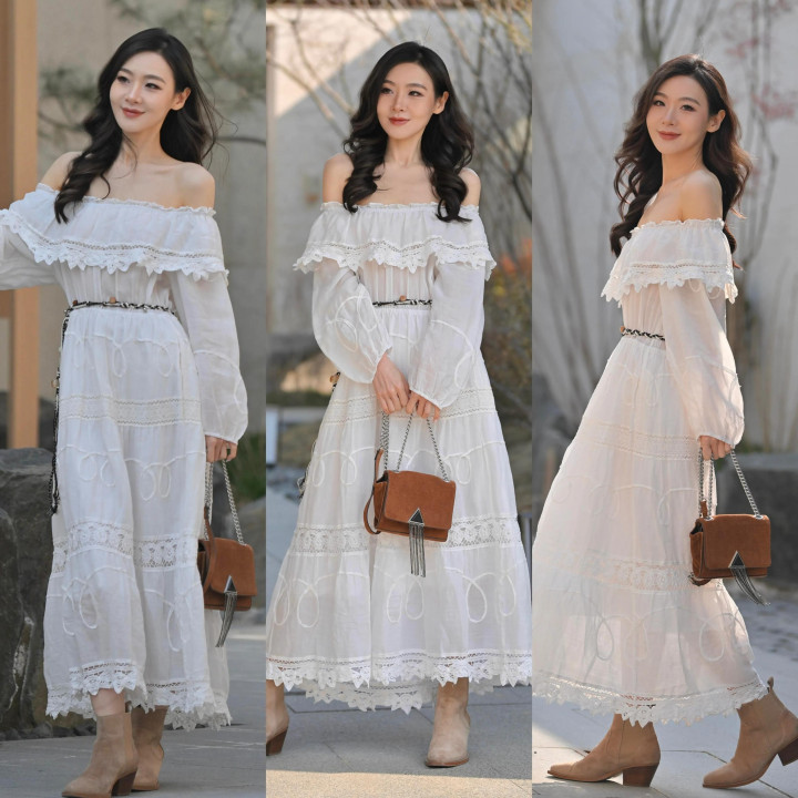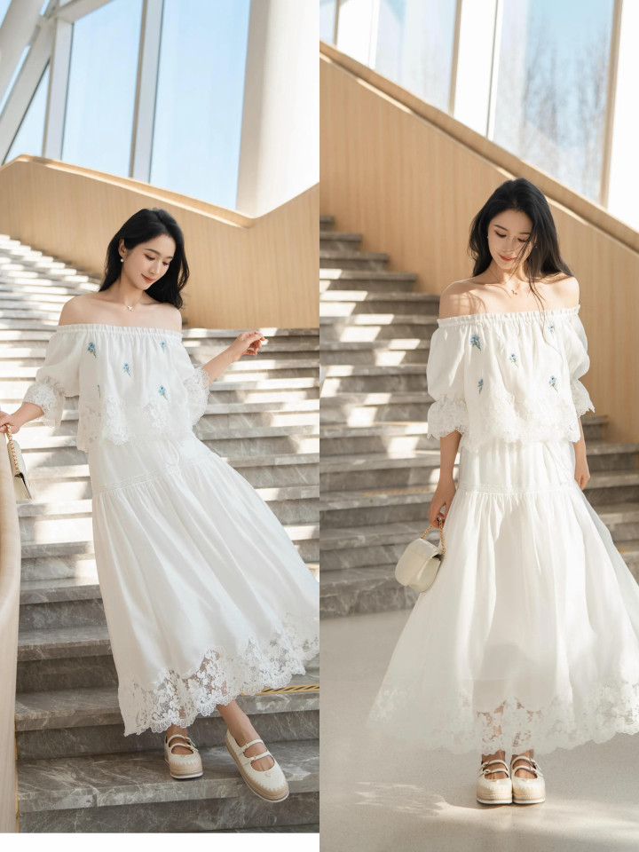 Tips ④:一字肩真挚衫+薄纱伞裙