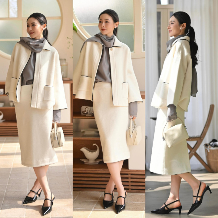 Tips②:白色短大衣裙装
