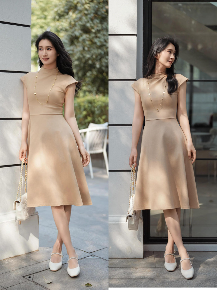 雷同是连衣裙,名堂想象不同,热诚不同,穿在身上气质互异蛮大。举例用经典的卡其色短袖连衣伞裙,穿在身上活力感满满,还能呈现好体态,裙长过膝不外脚踝,合乎的显露小腿肌肤,简略蔓延腿部线条。