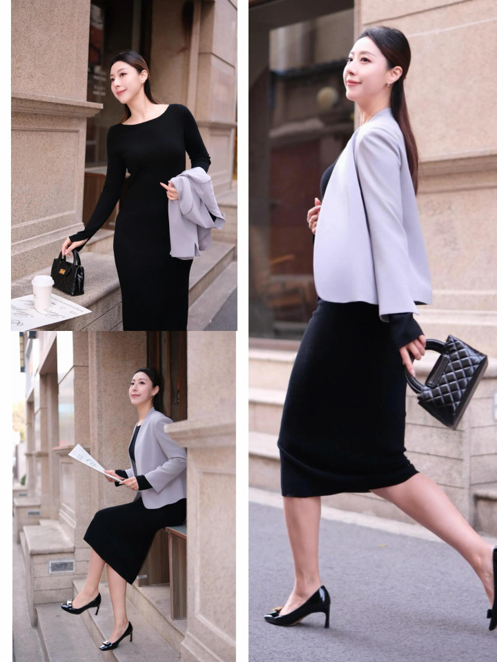 春日春风拂过带来暖意。可选一条玄色连衣裙来穿搭就能贬责全身造型。为了能更好地呈现出好气质,这时不错选拔浅紫色的无领西装外衣来穿搭,就造成外短内长的搭配有经营,高腰线坐窝显著。