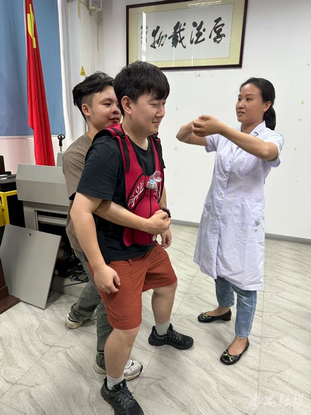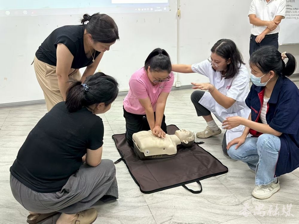 工友在医护东谈主员引导下开展急救实操