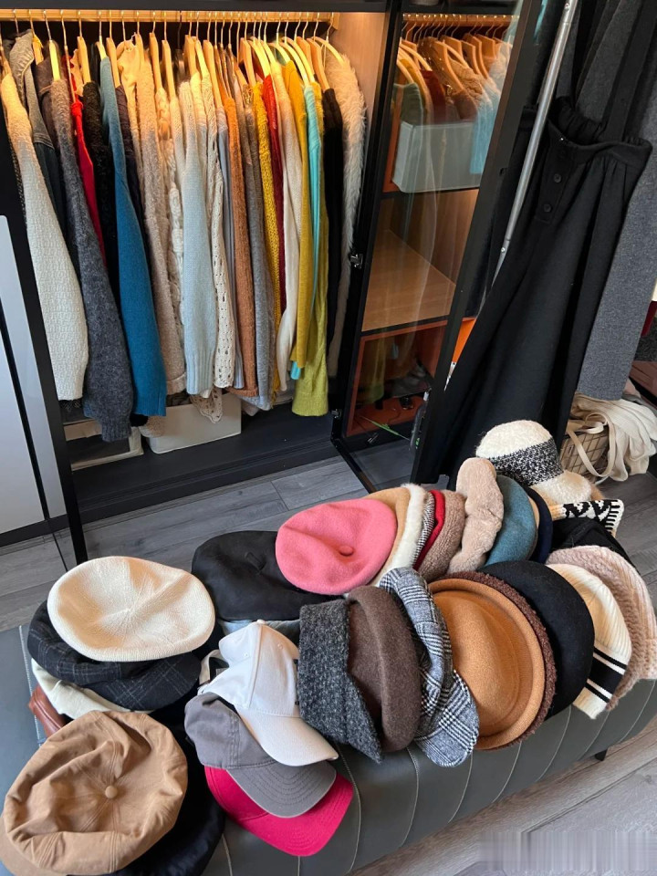 还有东谈主终点可爱买帽子,何况要证实不同时势的衣服搭配不同格调的帽子,是以家里的帽子亦然好多的。