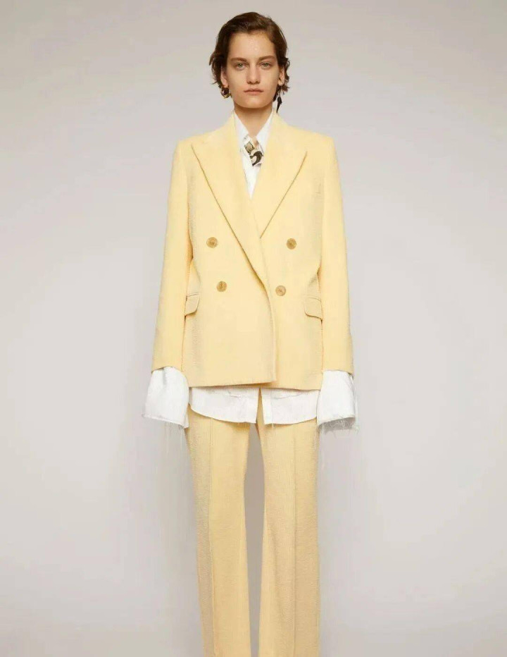 新一季的日光黄,在面料科技上更具巧想:带有眇小珍珠光泽的提花织纹、具备三防功能的科技棉麻,王人让西装在保握视觉温润的同期,兼备实穿性与翌日感。它是“氛围感”的终极体现,岂论是会议中搭配挺括白衬衫与直筒西裤,传递专科而富余创造力的形象;一经在周末,以一件 oversized 日光黄西装叠穿纯棉白T与牛仔裤,营造慵懒而精细的常识分子立场。它如兼并层奢睿滤镜,让一稔者在职何场景下王人能散逸自信、讲理且简约的光芒。