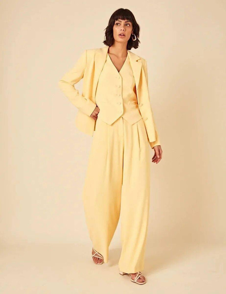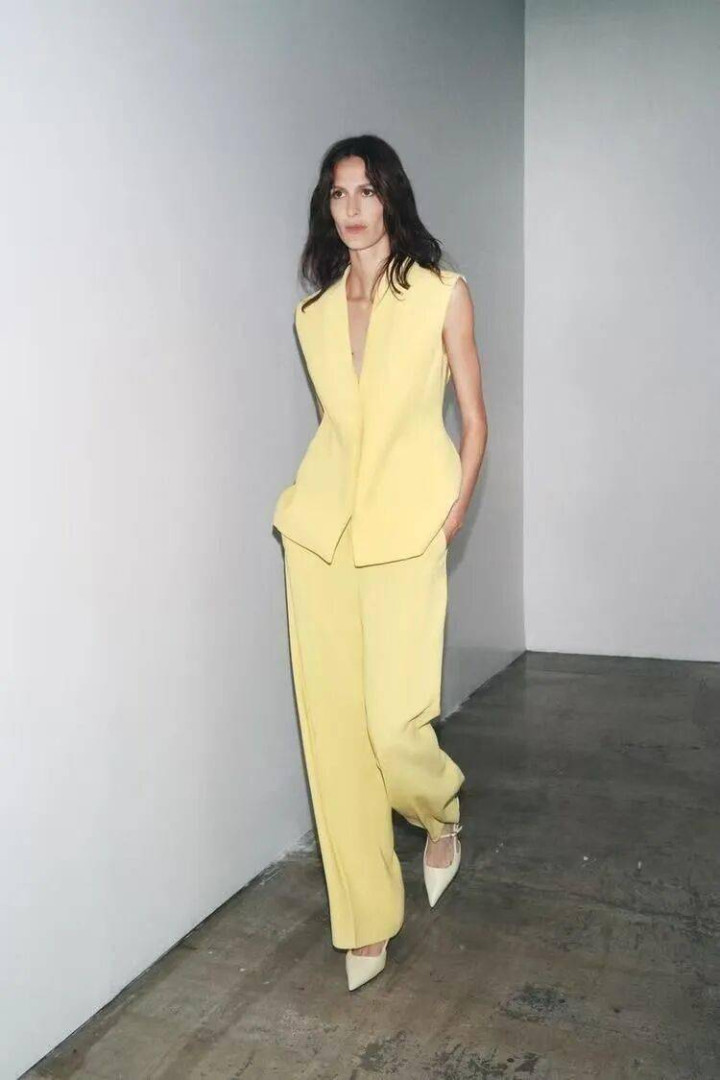 这一季的云絮黄西装,在色调上呈现出更深奥的线索感——低富足度中融入一点不易察觉的灰粉调,如宣纸上晕开的淡彩,温润而高等。面料上,哑光羊毛混纺与轻飘醋酸缎成为主流,旨在捕捉光辉流动时的轻柔质感,而非直白的反射。岂论是搭配同色系阔腿裤演绎极致勤俭的“新选取禅意风”,一经内搭真丝吊带裙,于柔好意思与力量间找到精妙均衡,云絮黄西装王人宛如一首行走的暧昧诗,不言不语,却已谈尽春日的风致与气韵。