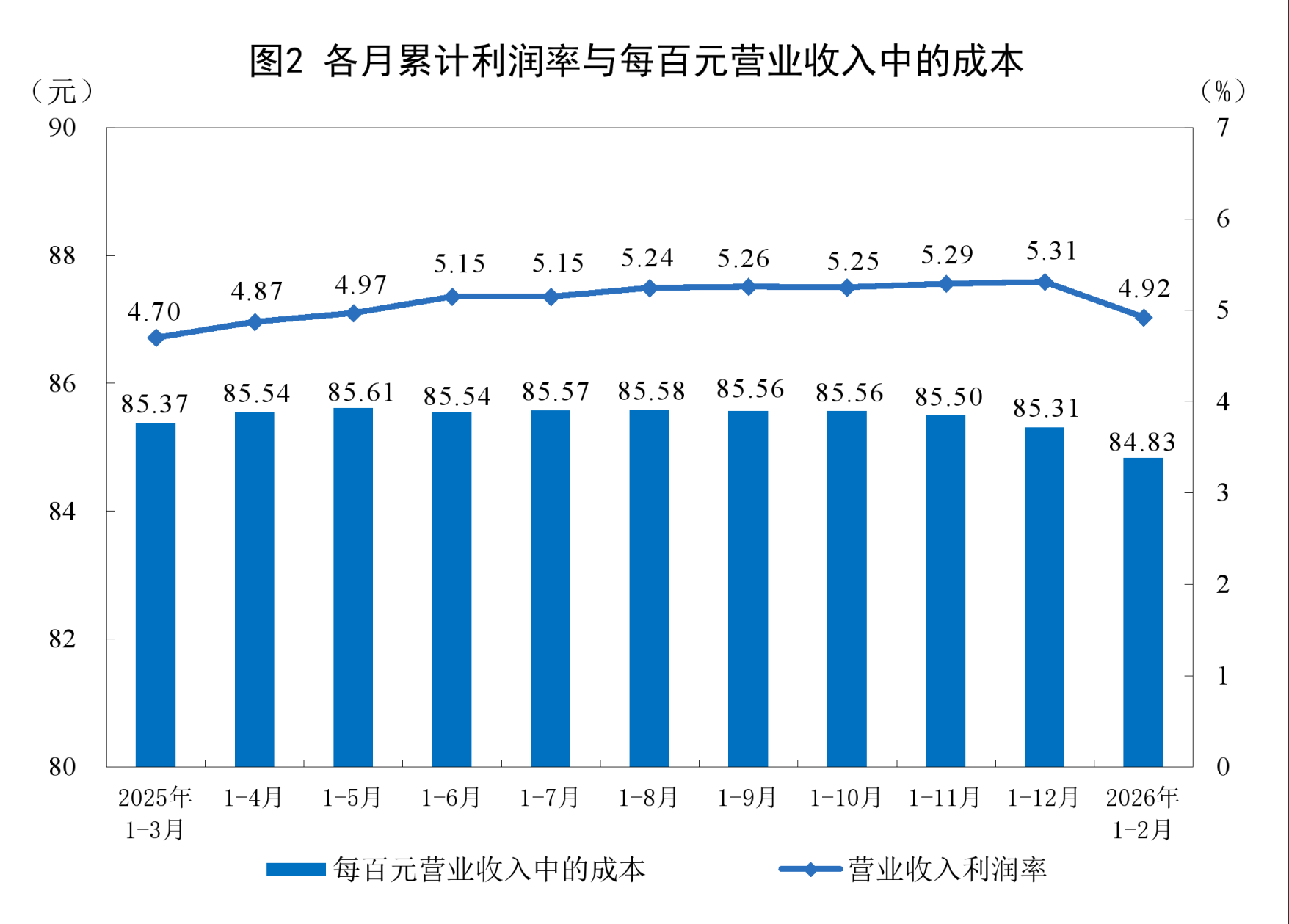 1—2月份,规模以上工业企业杀青买卖收入20.84万亿元,同比增长5.3%;发生买卖资本17.68万亿元,增长5.0%;买卖收入利润率为4.92%,同比上涨0.43个百分点。